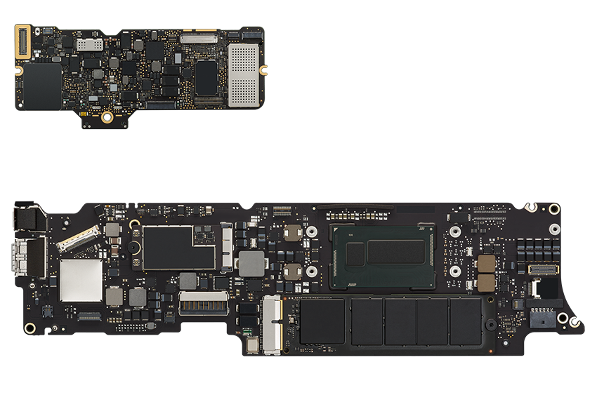 MacBook je od základu navrhnutý na efektívnu prácu v úplnej tichosti. Používa úplne nový procesor Intel Core M šiestej generácie, ktorý si vystačí len s 5 wattmi. V súhre s vysoko optimalizovaným OS X odoberá procesor tak málo energie, že počítač vyžaruje minimum tepla. Preto nie je na jeho chladenie potrebný žiadny ventilátor. Takže MacBook pri práci nebudete počuť. A základná doska, na ktorej je procesor naištalovaný, je postavená tak, aby sa všetka funkčnosť Macu vošla do čo najmenšieho priestoru.